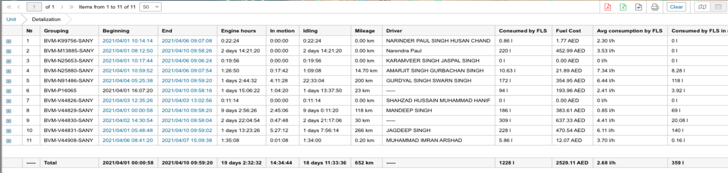 • Live fuel monitoring: Real-time tracking of fuel levels, fuel fillings, and detection of fuel theft.